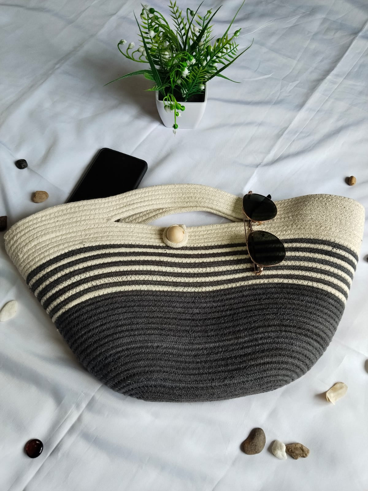 Each piece starts with locally sourced cotton rope, carefully sewn into shape, no shortcuts, just pure craftsmanship.